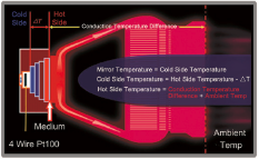KGT-DP 采用四級增強型帕爾貼冷泵,理論溫差為107℃,制冷強勁,使高溫環(huán)境下測量更低露點成為可能。熱管散熱的熱傳導效率比普通的純銅高數(shù)十倍,甚至上百倍; 而柔性導熱材料使冷泵基體與散熱器緊密無縫連接,其導熱系數(shù)是普通導熱膏的近30倍。