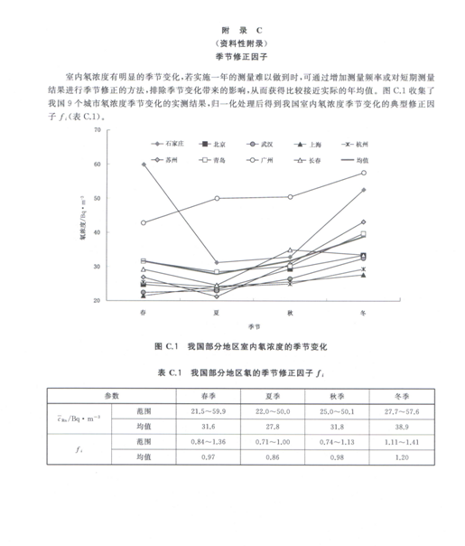 ——新標準分別依據ICRP第65號出版物(1993)以及ICRP關于氡的輻射防護聲明(2009)給出了室內氡及其子體的劑量約束值和室內氡濃度的控制值。并將氡濃度控制值的表述由年均平衡當量氡濃度改為年均氡濃度。