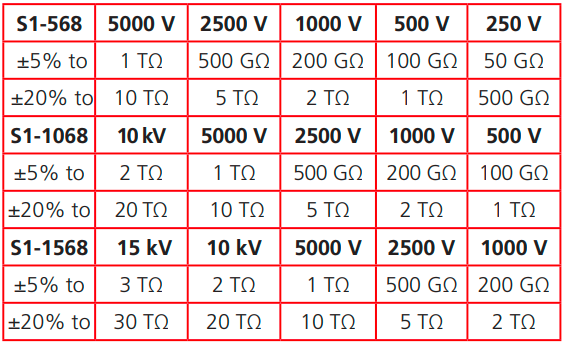 ■ S1-568測量*高達15 TΩ(5 kV)的絕緣電阻